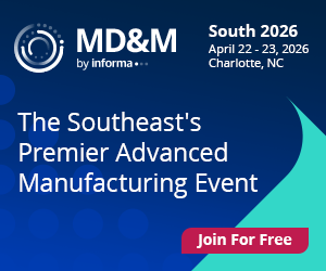 Join thousands of engineers & manufacturing leaders at MD&M South, the Southeast's premier 6-in-1 expo in Charlotte, NC, April 22-23. See the latest in medtech, automation, design, packaging, plastics, and processing. Register now while it's FREE!