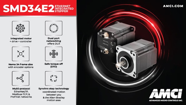 | | | | | | Sponsored | AMCI’s SMD34E2 Ethernet Integrated Stepper offers high-quality performance in an affordable, complete motion solution. |